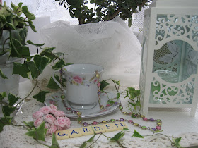HI Charo! Oh, what a lovely tea setting! The tea cup is so beautiful! I love how you've placed the necklace and roses and lace! It's so inviting. Thanks for popping in to see me.